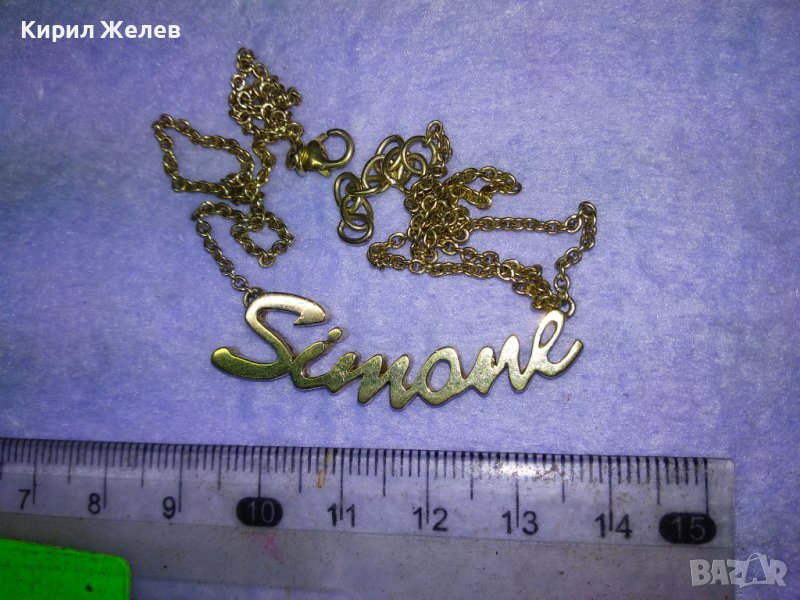 SIMONE Прекрасно ПОЗЛАТЕНО СРЕБЪРНО АРТ КОЛИЕ Марково СРЕБРО 925 ИТАЛИЯ с Името СИМОНА 40210