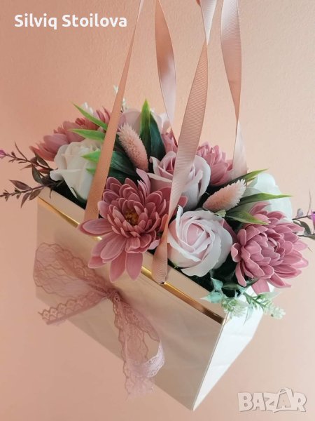 🌸Ново🌸Страхотна розова чантичка със сапунени цветя за вашите специални поводи🌸 → Обява 42846184