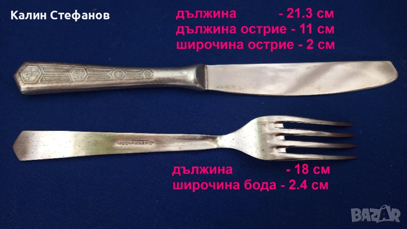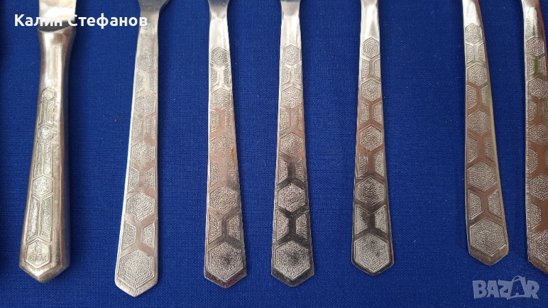 Моля да прочетете внимателно обясненията по обявата и след това да задавате въпросите си. При положение че обявата е активна и всичко ви е ясно, може директно да поръчате без да се губи време с писаници. Комплекта е в отлично състояние. Ползван е по принцип. Ножовете са 11 бр, а вилиците са 9 бр. Неаръждавейка, масивен материал. Общо са 20 бр на цена от 40 лв или по 2 лв/бр. Може и по отделно по 4 лв/бр. Изпращам само и единствено по Еконт добре
