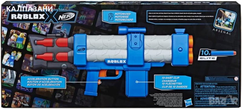 Nerf Roblox Arsenal Pulse Laser е бластер, стрелящ със стрели и е вдъхновен от играта Arsenal на Roblox и най-интересното - работи с батерии