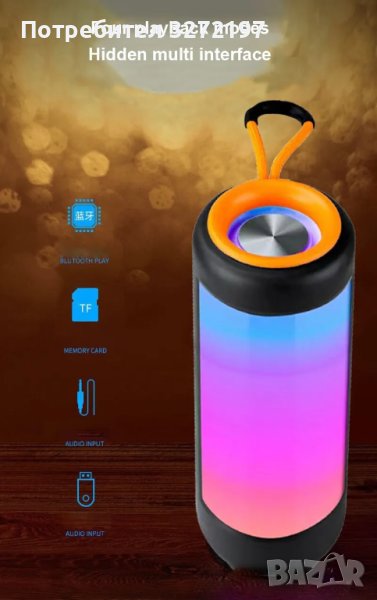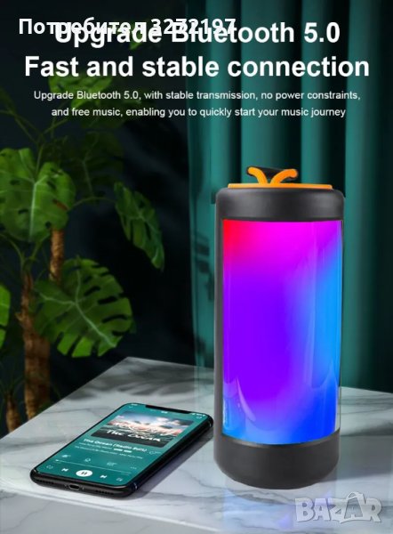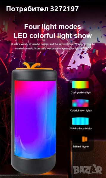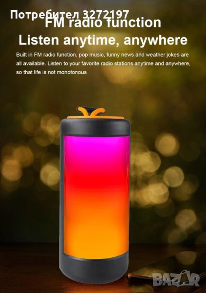 Bluetooth мощен високоговорител - субуфер,FM радио, множество LED светлини