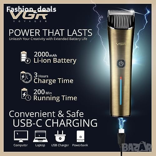 Нова Професионална Машинка за Подстригване VGR Турбо Мотор LED за мъже