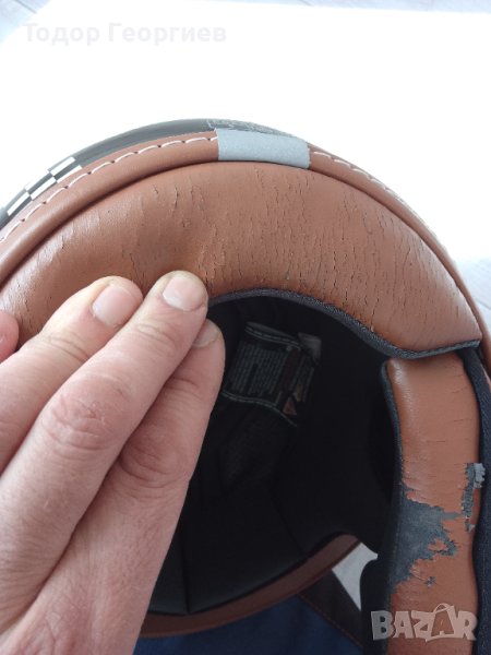 Каската е нова.Кожата се е напукала от стоенето и се рони.