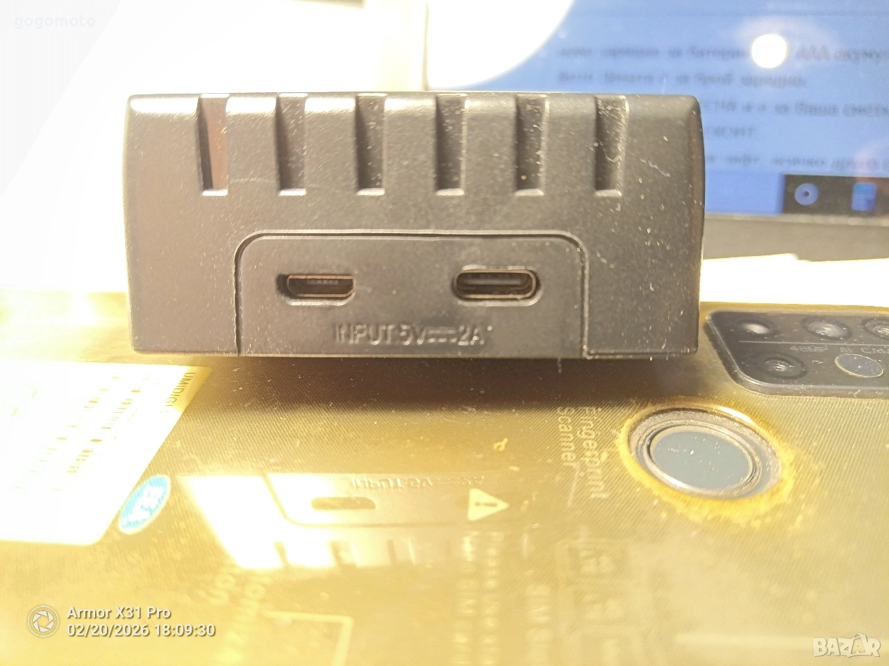 Има 2 входа - единият е micro USB, другия е type C.
