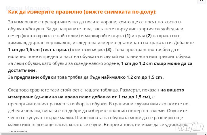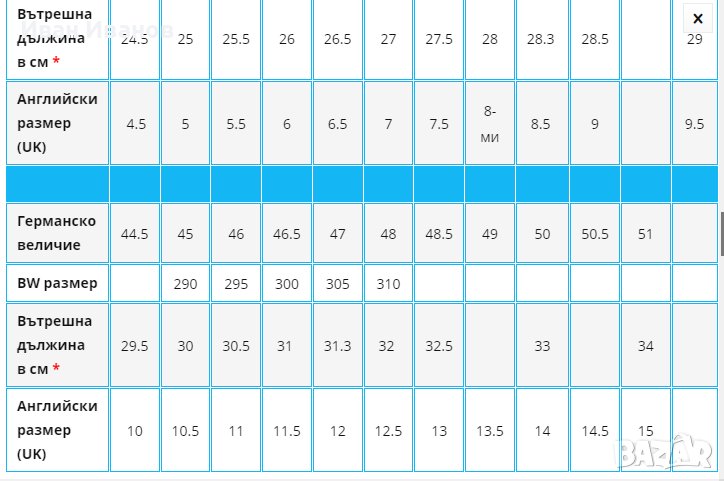 Дължина на стелката 31,3 което отговаря на 47 номер