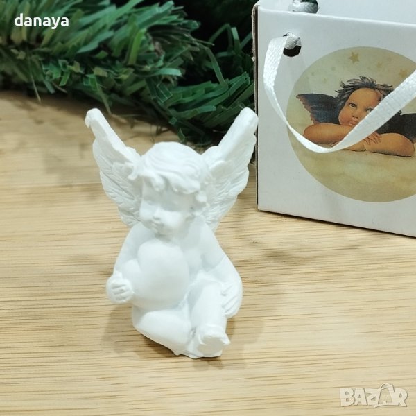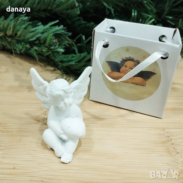 Малка декоративна фигурка – ангелче със сърце в ръцете си, в подаръчна торбичка. Предлагат се различни модели. Много подходящи за подарък на много хора.