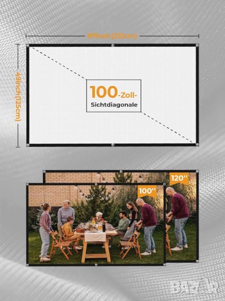 Екран за проектор, 100-инчов 16:9 HD прожекционен екран, преносим и сгъваем прожекционен екран, двустранен видео прожекционен екран за вътрешна и външна употреба, без бръчки, за домашно кино Относно този артикул