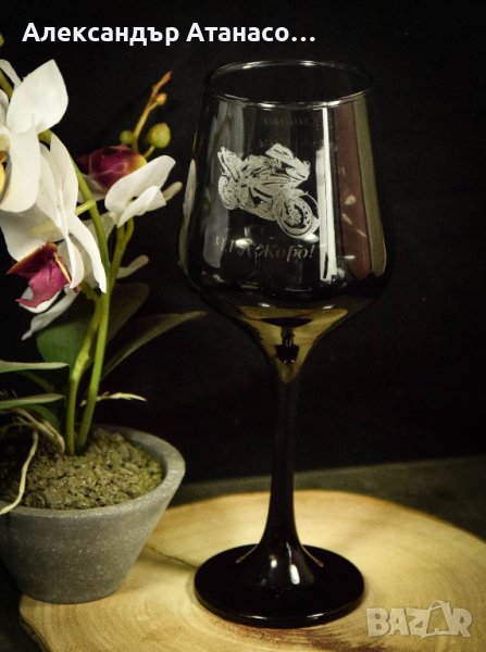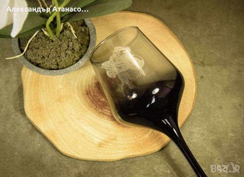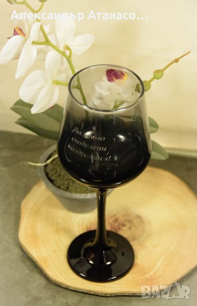 Лазерно гравирана по ваш избор стъклена чаша за вино → Обява 42856027