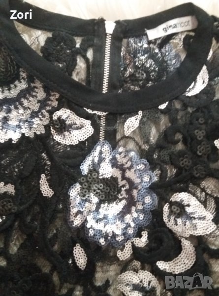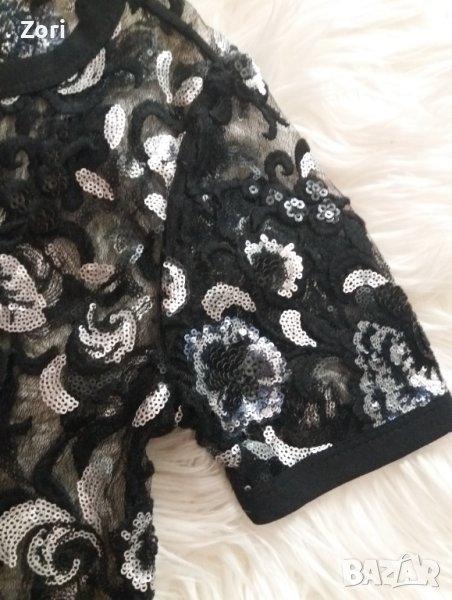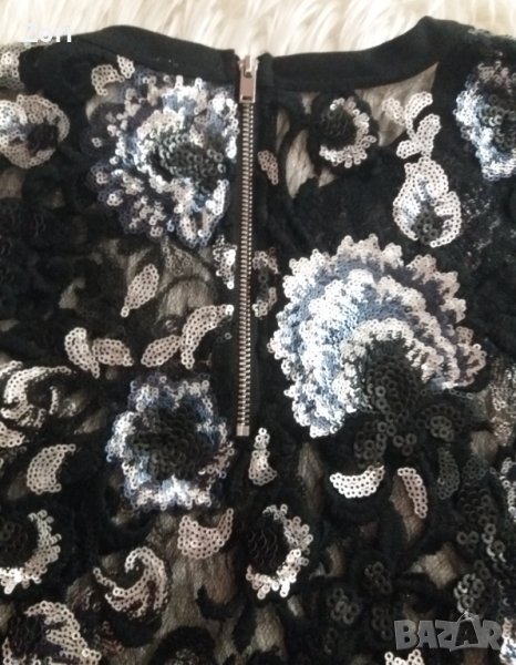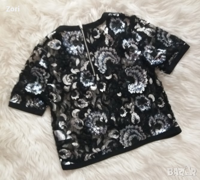 ВПЕЧАТЛЯВАЩ черен топ от тюл - целият обшит с цветя от пайети → Обява 42860478