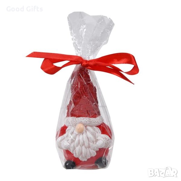 Свещ за коледна украса, 3D джудже Дядо Коледа с бяла брада.