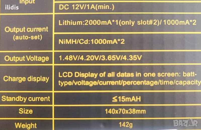 Предназначено е за зареждане на всички литиевойонни и никелметаохидридни и Nim/cd батерии като капацитетът на батерията и процесът на зареждане може да се задава