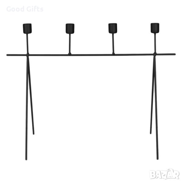 Декоративен свещник черен металик, с високи крака и 4 места. Може да се комбинира със свещи с диаметър до 2 см.