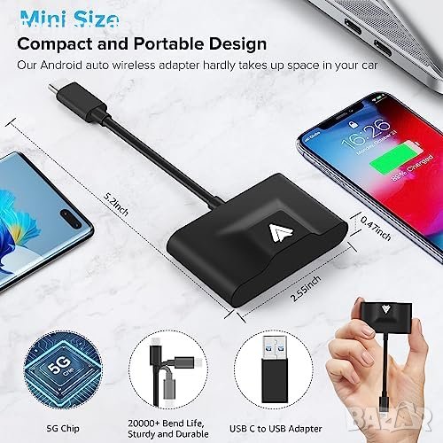 - Безжичен адаптер за Android Auto