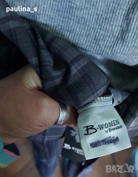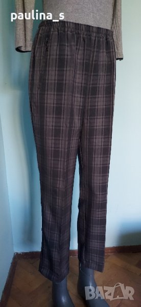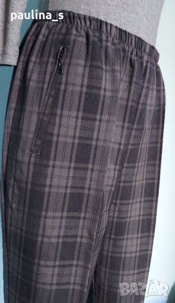 Еластичен панталон в сиво каре с коси джобове и ципове, моделът е регюлар фит с нормална талия на ластик. Нов, без дефекти, една бройка, става за посочените размери.
