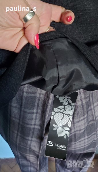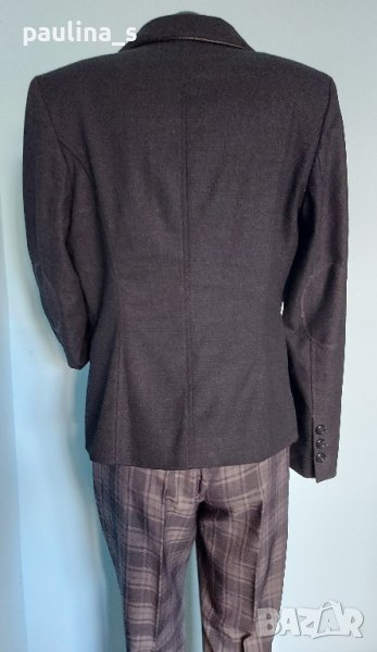 1. Дамско марково сако с втален силует, външни джобове, копчета и кръпки на лактите, с високо качество. Платът е леко еластичен габрдин, плътен и луксозен, покрива няколко размера, една бройка е, без дефекти.