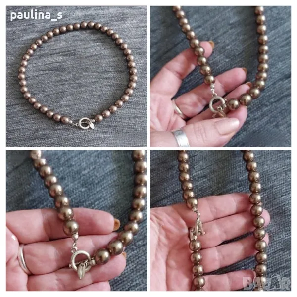 2️⃣. Колаж / Винтидж / Колие, огърлица тип чокър от Шел перли. Цената е крайна, без пазарлъци. Разкошно колие от шел перли, с О-Т закопчаване в сребристо, мисля, че е мелхиор. Не е ново, но е винтидж и във вид. Камерата не може да улови красотата на бижуто. Дължината е 45см, диаметър на перлите 9мм.
