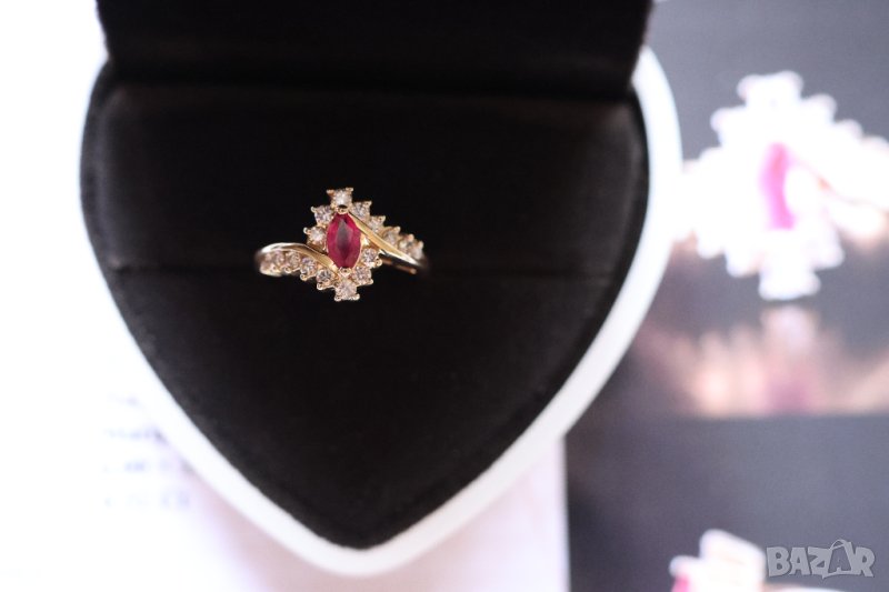 Нов Златен Пръстен с Естествен Рубин и 0.35кт Естествени Диаманти