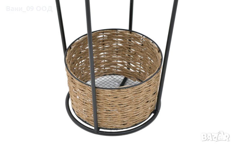 Красива помощна масичка с плот в горната част и плетена кошница в долната част