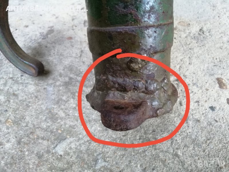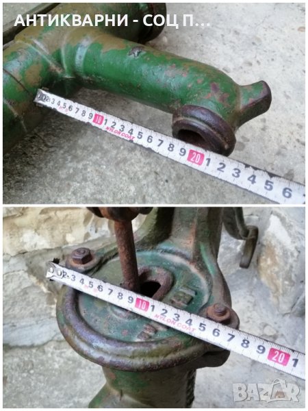 - Помпата е в перфектно състояние за годините си, единствено има лека заварка в долната част, която е снимана отблизо и е отбелязана на снимките, но е заварена много добре и е напълно здрава, прекрасна за употреба на битов кът и много други, всичко е снимано подробно, размерите са на снимките!