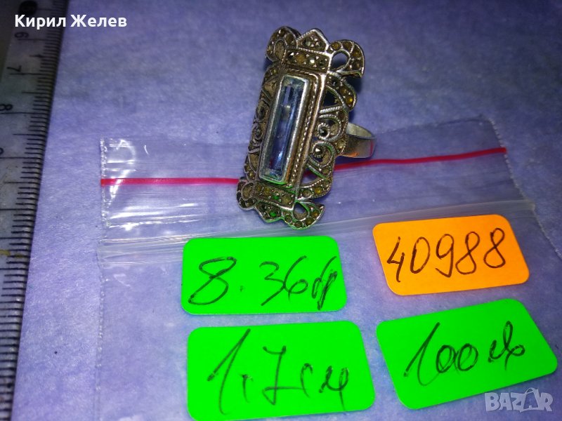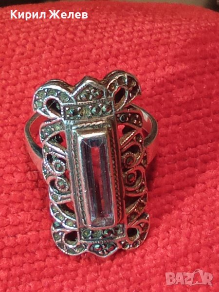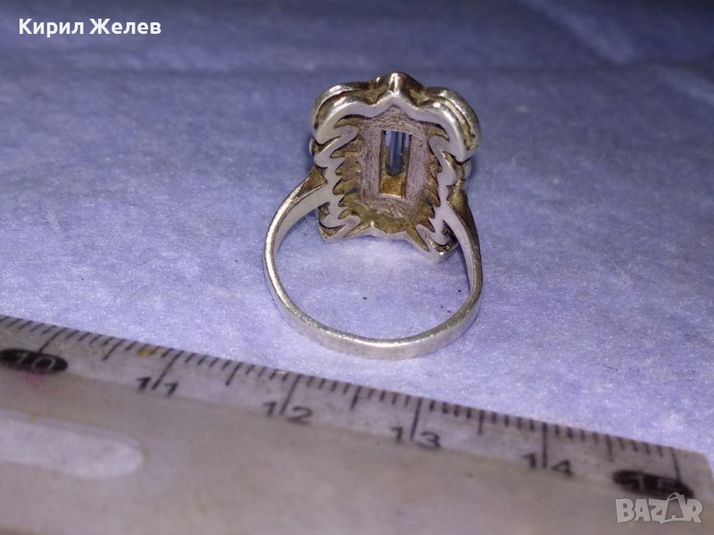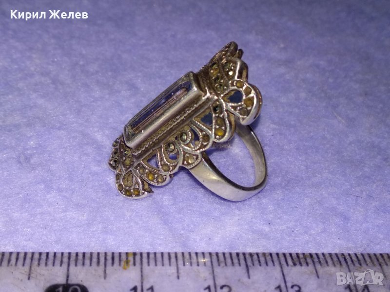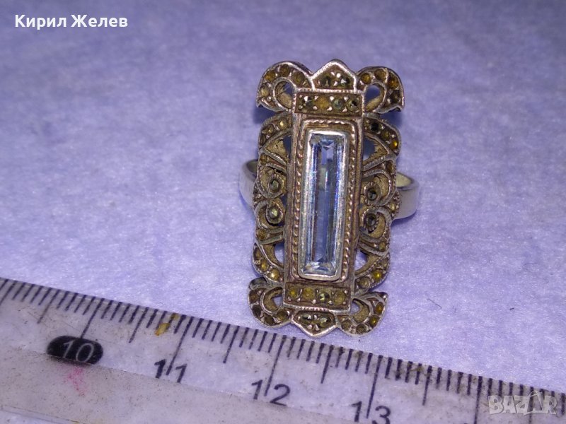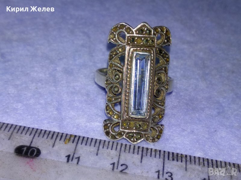СТАРИНЕН РАЗКОШЕН АРТ НУВО СРЕБЪРЕН СКЪПОЦЕНЕН ПРЪСТЕН с РЪЧНО ЮВЕЛИРНО ФАСЕТИРАН СИН ЦИРКОНИЙ 40988