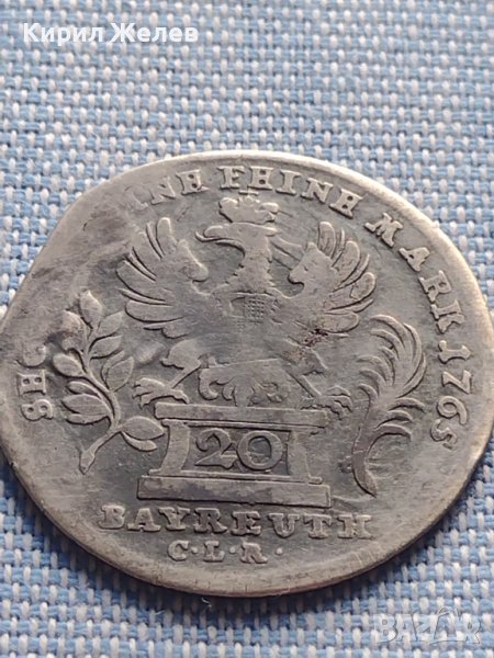 Сребърна монета 20 кройцера 1765г. Фридрих Кристиян Бранденбург Байраут 29765 → Обява 42871823