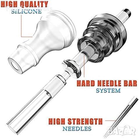 - Тиха работа, регулируема дълбочина на иглата чрез завъртане