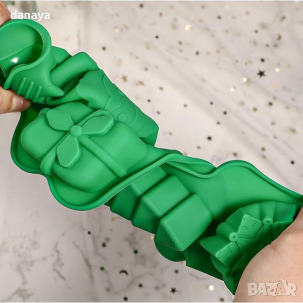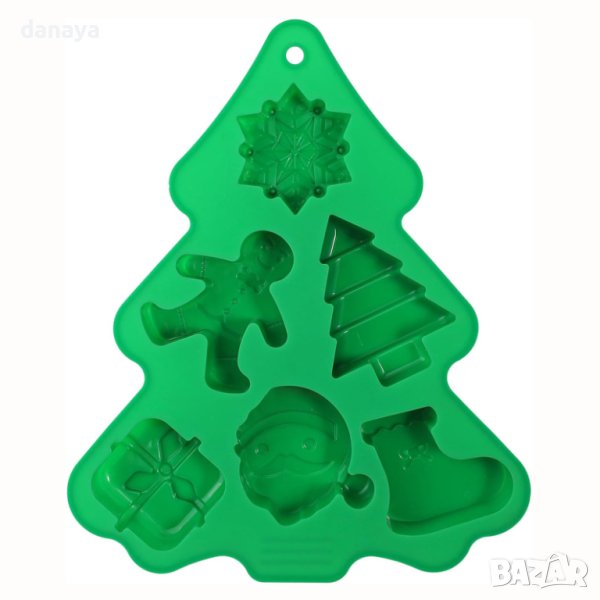 Коледна силиконова форма за печене с 6 гнезда. Ще направите вкусни домашни кексчета с форма на Дядо Коледа, коледно ботушче, коледен подарък, снежинка, джинджифилово човече и елхичка. Формата е подходяща за приготвяне на коледни сладки, коледни кексчета, мъфини и други сладкиши.
