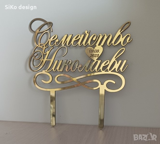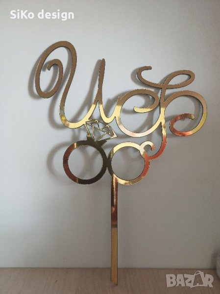Сватбен топер. Изработен от огледална пластмаса.Ширина на топера 15см. → Обява 42873606