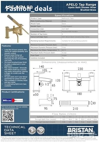 Нов Bristan Луксозен Смесител за баня и душ Apelo, Матиран Месинг, Издръжлив