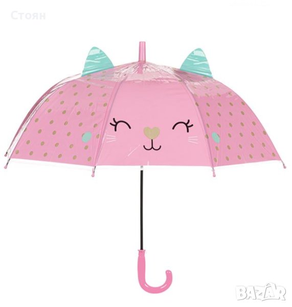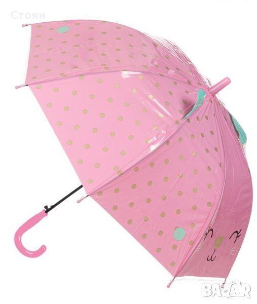 Чадър тип бастун Детски автоматични розови златни котешки уши на точки 66 см → Обява 42875040