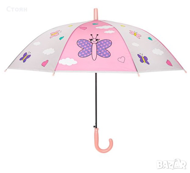 Детски чадър бастун розови пеперуди сърца 65 см → Обява 42875892