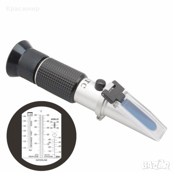 Оптичен рефрактометър 5в1 за измерване на антифриз ( ПРОПИЛЕН И ЕТИЛЕН/ГЛИКОЛ) , електролит, AdBlue и течност за чистачки. Уредът разполага с автоматична температурна компенсация, за температурата на разтвора, в границите от 10 до 30 °С. Оптималната температура на разтвора при провеждане на измерването е 20 °С.