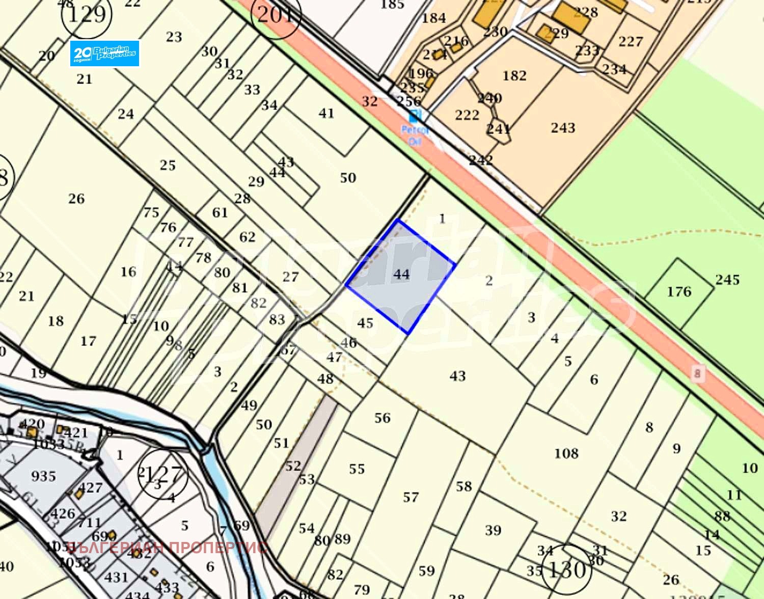 Парцелът (4930 кв.м.) е равен, отреден за административна сграда и комплекс съоръжения. Намира се на ведомствен път.