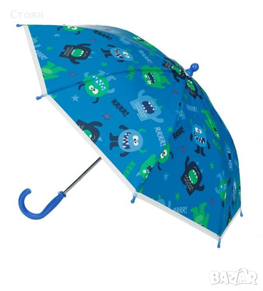 Чадър тип бастун ръчен детски сини чудовища 54 см → Обява 42876255