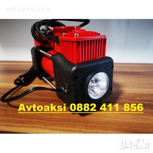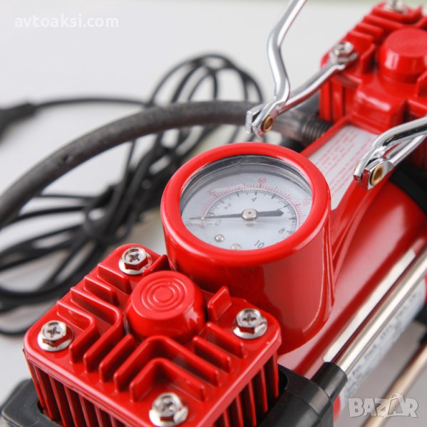 Компресор с манометър за помпане на 4х4, микробуси, ATV, камиони, автомобилни и велосипедни гуми, въздушни матраци и надуваеми принадлежности. Компресора е с 2-ва цилиндъра с диаметър 30мм.