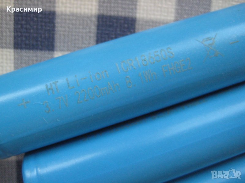 – HT Li – ion ICR 18650S 3,7V 2200 mAh 8,1Wh FHGE2 – 8 бр х 3,70 лв всяка.