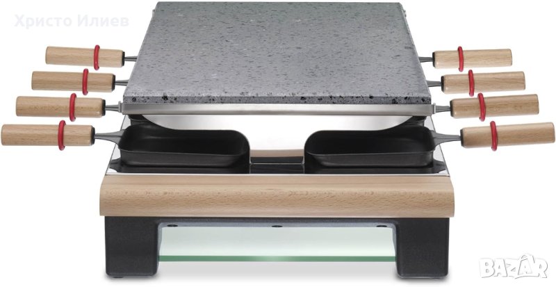 Голям капацитет: раклет за 8 души и голям камък за готвене.