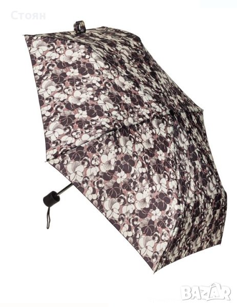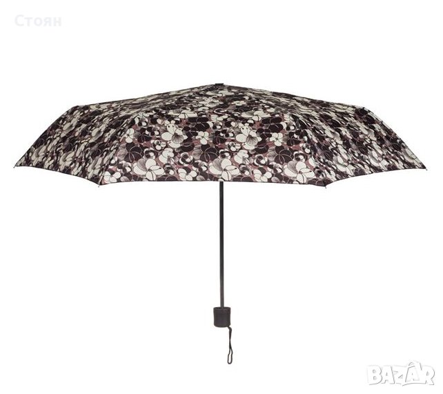 Чадър за дъжд с дизайн на цветя. Разделя се с механизъм за ръчно отваряне и се доставя с калъф.
