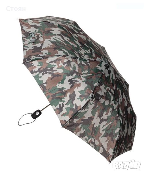 Чадър за дъжд в камуфлажен цвят. Има дръжка с прав захват, механизъм за автоматично отваряне и калъф.