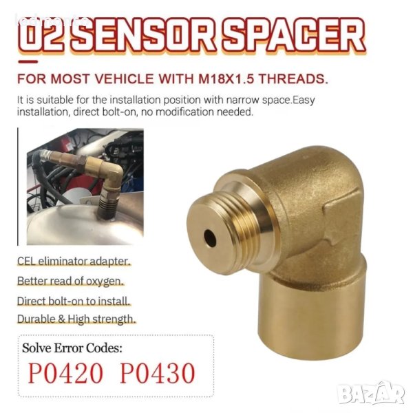 Продаваме висококачествена втулка за ламбда сонда и лъжец, която ще реши проблемите с грешките на таблото на вашия автомобил. Нашата втулка е подходяща за втора ламбда сонда или O2 ламбда сонди, идваща с ъгълов дизайн и дължина от 41мм, която след завиването става 32мм без резбата.