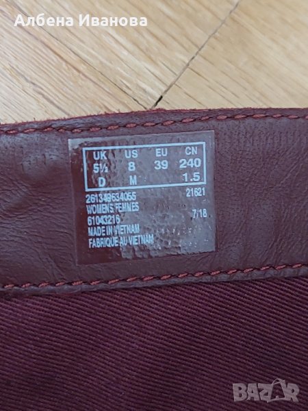 Продавам дамски ботуши Clarks Original 39 номер. Ботушите са изцяло от естествена кожа. Стелката от край до край е 25см., т.е. за крак около 24.5 см. Цветът е винено червено. Ботушите съм обувала само веднъж и са в перфектно състояние (като нови), което е видно от снимките. Изпращам само с Еконт с включени тест и преглед преди плащане. За София лично предаване е възможно в центъра или южните квартали.