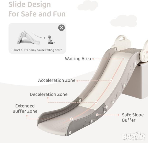 на пързалката я правят подходяща за различни повърхности, като дивани, легла,