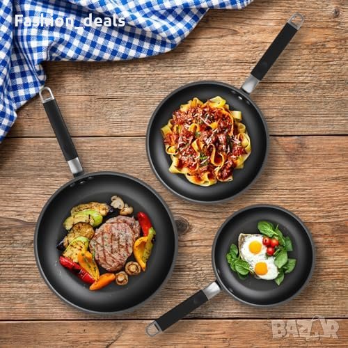 - Трипластово незалепващо покритие: Устойчиво на надраскване, храната лесно се отделя.