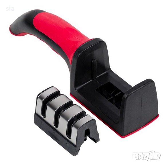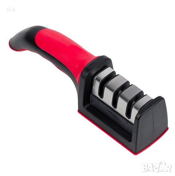 Точило за ножове с противоплъзгаща силиконова долна страна, подвижна шлифовъчна глава от неръждаема стомана и ABS дръжка с противоплъзгаща повърхност. Има една позиция за волфрамова стомана и 2 позиции за керамика. Подходящ е за шлайфане и хонинговане на прави ножове от неръждаема стомана. Не е подходящ за керамични и назъбени ножове или ножици.