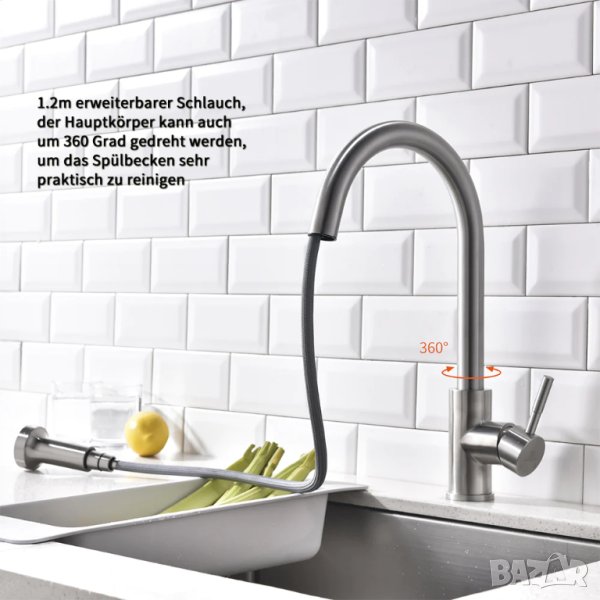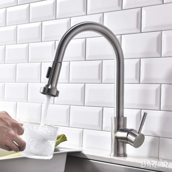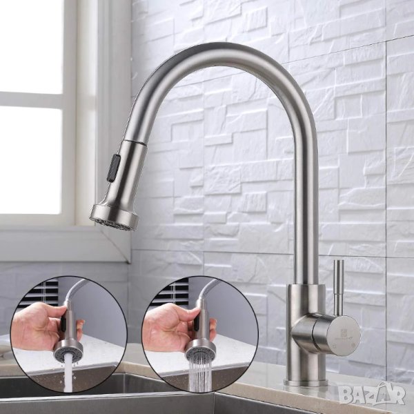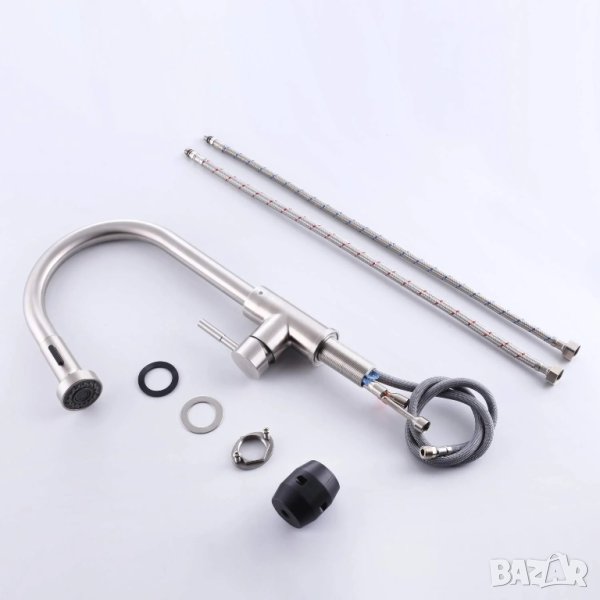 Елегантен смесител от неръждаема стомана с удължаващ маркуч