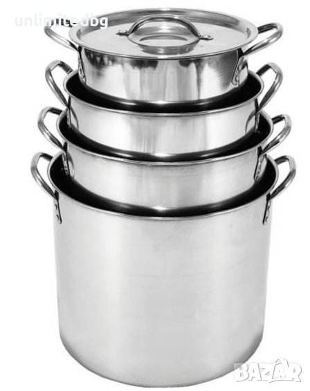 Тенджери от неръждаема стомана, 4 броя /МАТЕРИАЛ: НЕРЪЖДАЕМА СТОМАНА КОЛИЧЕСТВО: 4БР РАЗМЕРИ: 24CM, 26CM, 28CM & 30CM, ОБЕМ: 34L, 20L, 16L, 8L /