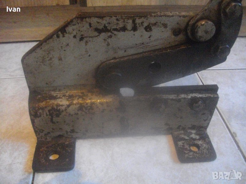 ОПИСАНИЕ на ръчна лостова ножица за рязане на ламарина. Цена 259 лв. Старо качество, със запазен външен вид и отлично техническо/работно състояние. Без забележки. Ножовете са без никакви наранявания. Дължина ножове за рязане - 12 см - 2 бр. Височина на инструмента с вдигната дръжка - 84 см. Основа масивна дебело желязо с размери 120 х 280 мм, с 4 прорза дупки за захват към работна маса. Предполагам ножицата е немско производство. Дебелина на желязото в горната част на режещата глава - 14 мм. Тегло на инструмента - 9,0 кг.