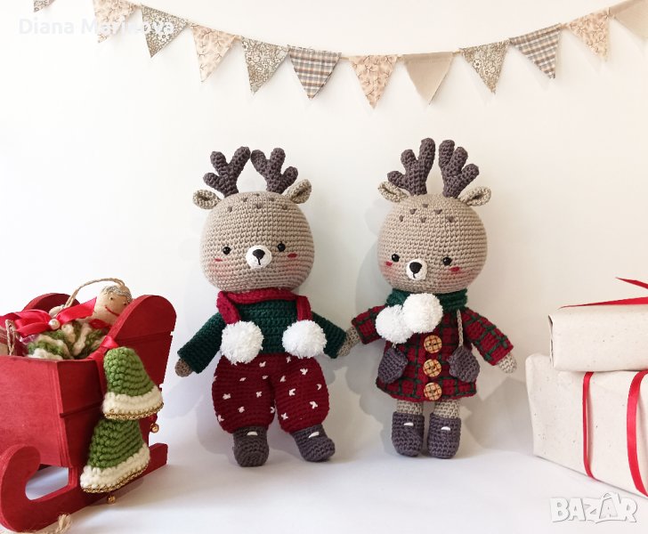 Коледни еленчета, играчки за деца, коледен подарък за дете, ръчна изработка, плетени играчки → Обява 42891111