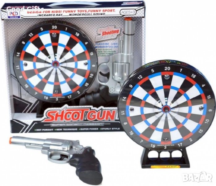 С Shoot Gun можете да тествате своята точност и да се състезавате с приятели или семейство. Можете да играете навсякъде, било то двор, гора или къща. Мишената и пистолетът работят с батерии, така че няма нужда от куршуми, стрелички, вендузи или други снаряди. Играта включва също звук и светлина, например, когато е произведен изстрел и той уцели целта.