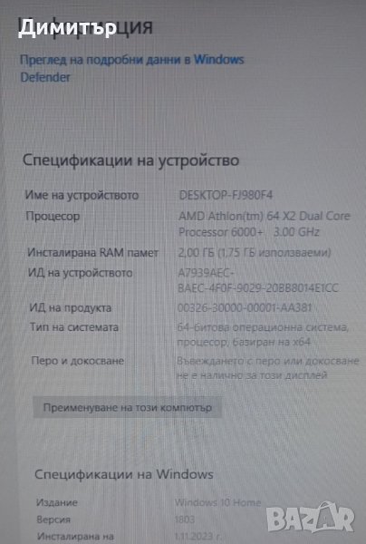 Комплект компютър и монитор. Инсталиран и активиран Windows 10. Инсталиран Microsoft Office(офис пакет). Работи адекватно за параметрите си, подходящ за учене, сърфиране в интернет и работа.